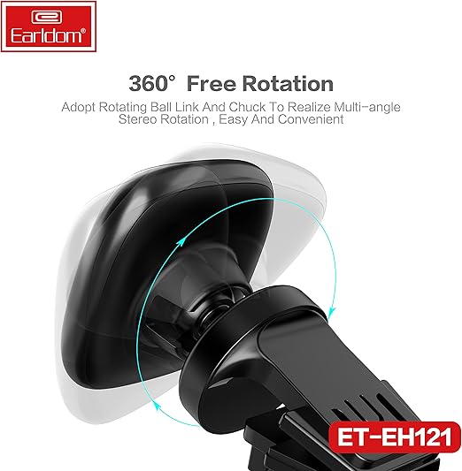 Mbajtësja magnetike Earldom ET-EH121 është një qëndrim kompakt që instalohet në grykën e ventilimit të makinës. Falë një topi të integruar brenda mbajtëses, mund të rrotullohet dhe të rregullohet lehtësisht drejtimi i telefonit.