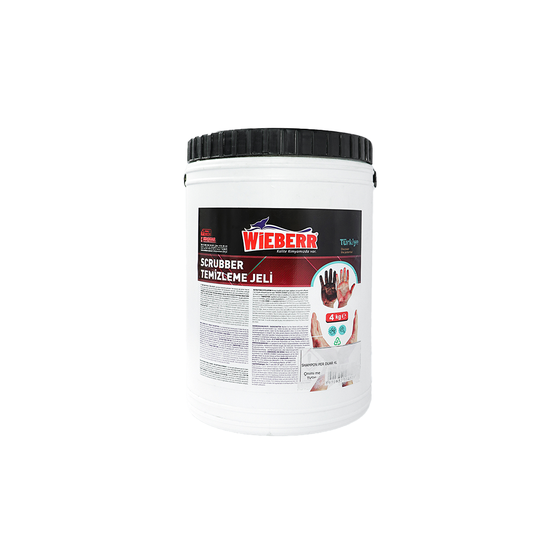 Aplikoni një sasi të mjaftueshme (3 gr) paste zbardhuese WIEBER SCRUBBER në duart tuaja, hollojeni vajin, kompletin, bojën dhe mbetjet e ngjashme në duart tuaja derisa të zhduken.